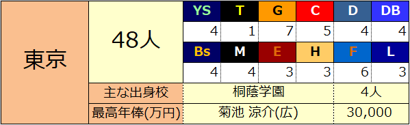 | 3位 | 千葉 | 55人 | 横浜高(5) | 菅野 智之(巨) | 60,000 |