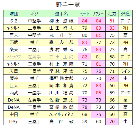 19年度の選手を入れ替えることを最優先に考えると、日本ハム有原投手、宮西投手、巨人丸選手、西武森選手が狙い目の選手になります。
