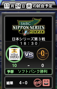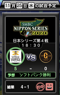 今年の日本シリーズはソフトバンクの圧勝でしたね。勝敗予想は当たり5、ハズレ1だったのですが、ソフトバンク偏重の予想が功を奏しました。