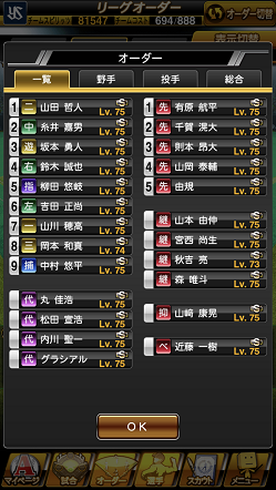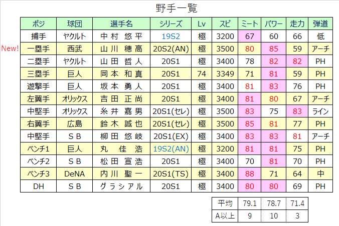 [table id=7 column_widths=”38%|12%|50%” /]念願の捕手をゲットできました。